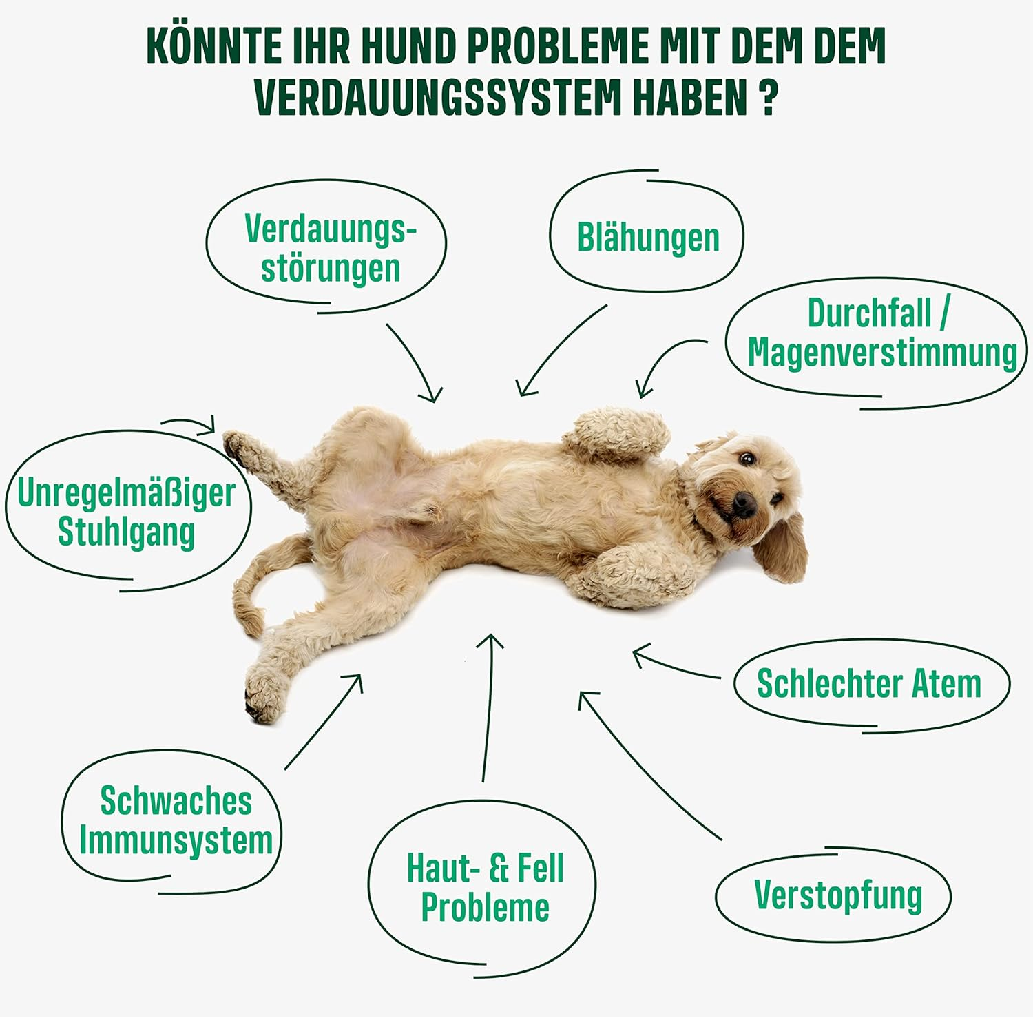 - ✅ Probiotika & Präbiotika für Hunde – Mit den besten probiotischen Stämmen (Bacillus Subtilis & Enterococcus Faecium) & MicroFOS zur Regulierung der Magen-Darmflora des Hundes. Unterstützt bei Verdauungsstörungen, Blähungen & Durchfall.