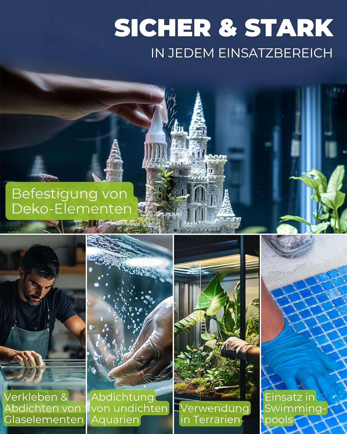 Multi-purpose silicone adhesive for aquariums: Designed for sealing leaking aquariums, constructing glass aquariums, and closing gaps, joints, and cracks securely and reliably.