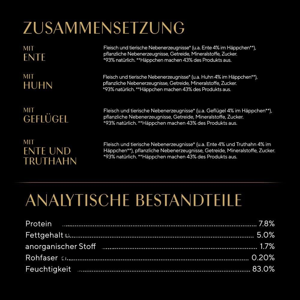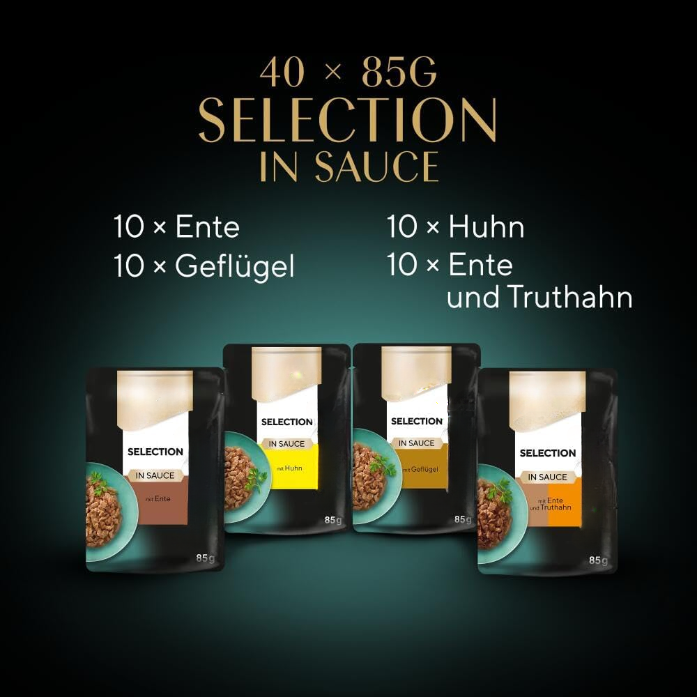 Irresistible premium wet cat food: High-quality, luxurious wet food made with a delicate blend of tender poultry pieces in a delicious sauce, conveniently packed in individual portion pouches.