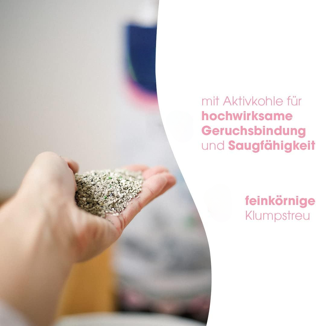 Product contents: Includes 1 paper bag, 10 liters of fine clumping litter with a baby powder fragrance, made in Germany.