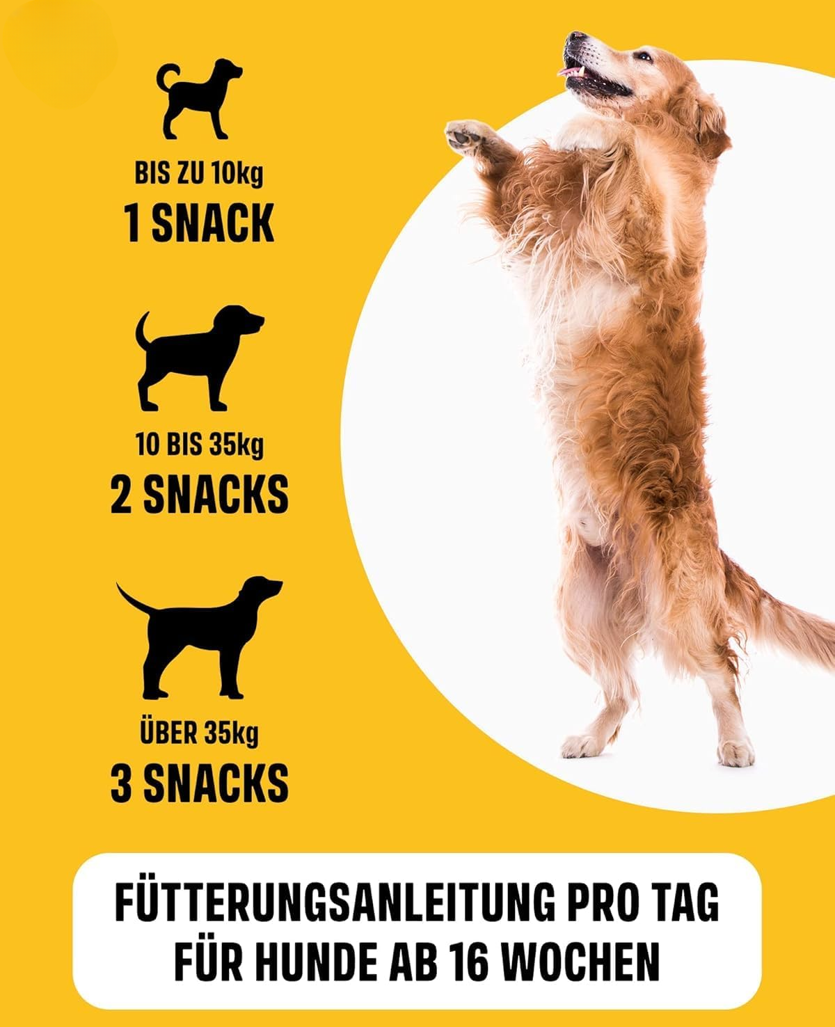 Long-lasting supply for all dogs: Contains 60 functional snacks (270 g). Suitable for all breeds, sizes, and ages, including senior dogs thanks to the soft texture. Please follow the feeding instructions on the label.