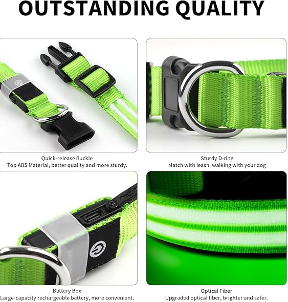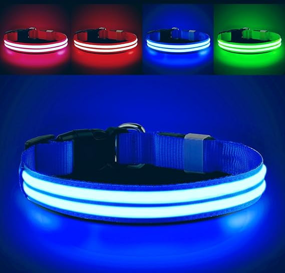 Rechargeable LED dog collar: This illuminated dog collar is USB rechargeable, providing a convenient and eco-friendly solution with no need for disposable batteries. Keeps your pet clearly visible at all times.