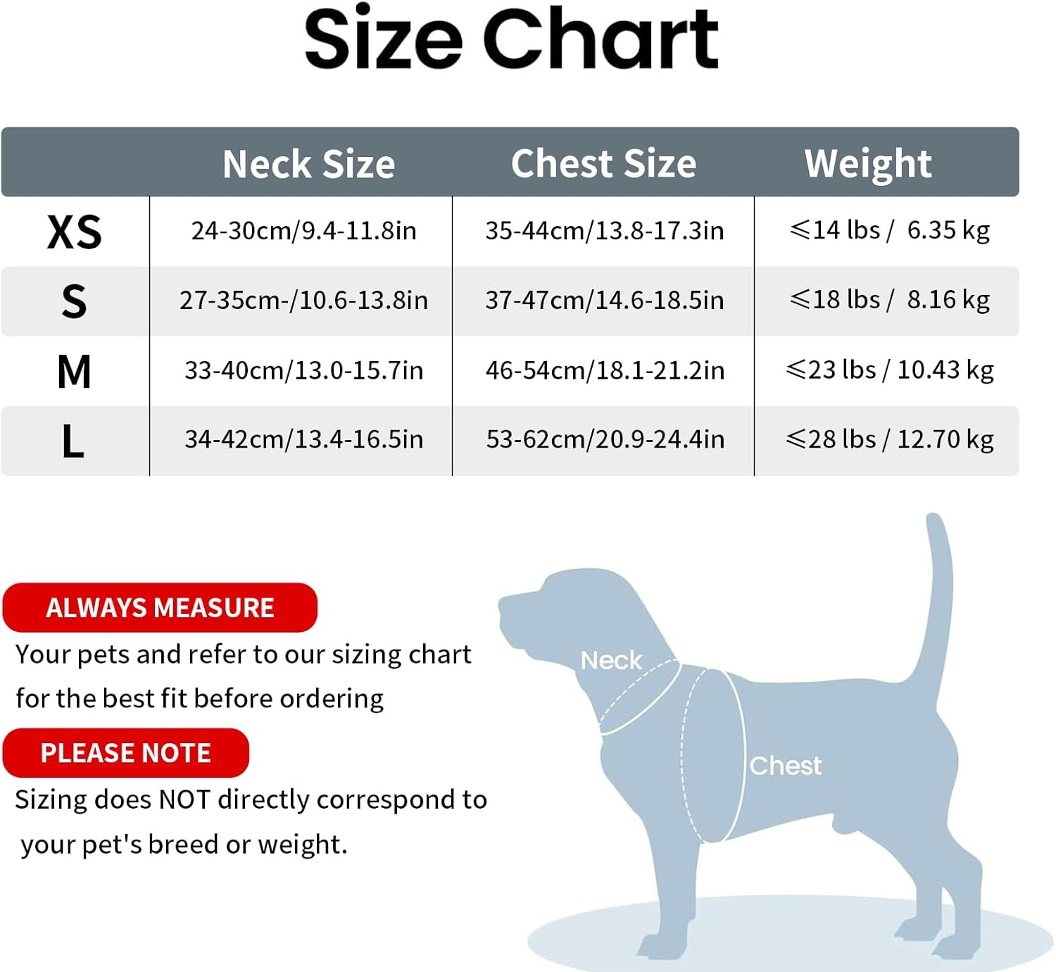 Easy to put on with secure buckle: Simply place your pet’s front legs into the harness, fasten the back Velcro, and secure with the buckle closure. For best fit, please measure your pet carefully and follow the size chart before purchasing.