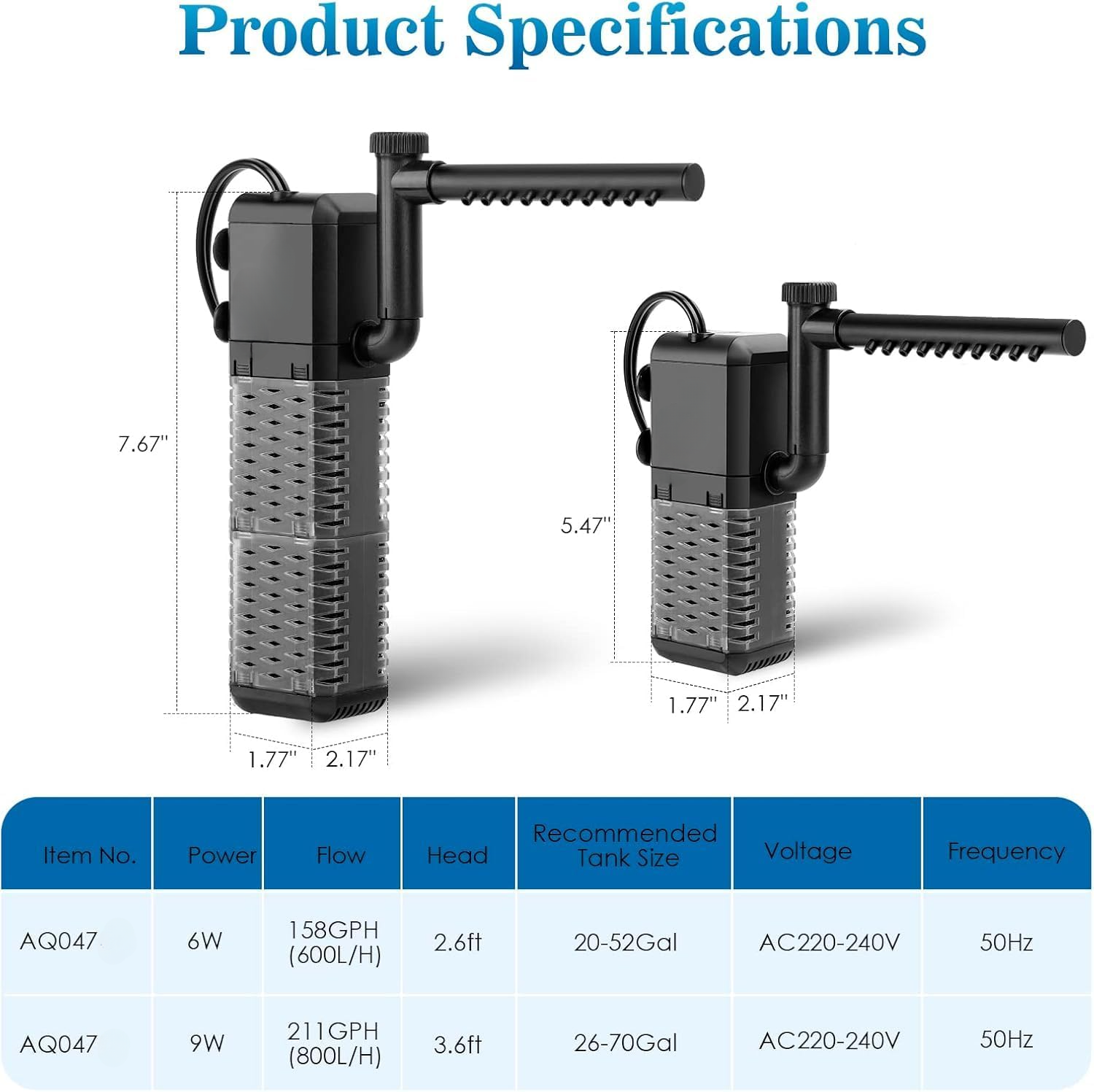 3-in-1 internal aquarium filter: This aquarium filter features rain spray and aeration modes to create effective water circulation and ensure a clean, well-oxygenated environment for aquatic life.